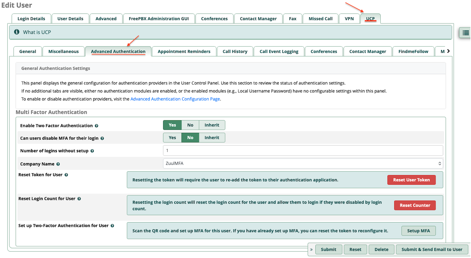 Click on the primary UCP tab and then the Advanced Authentication sub tab,